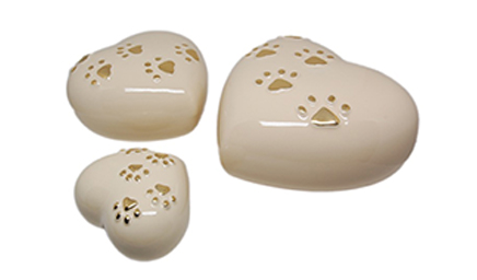 Urna metalica disponibila in 3 variante de dimesniuni. Este de culoare crem-lucios, cu urme de labute de culoare aurie. Urna mare si mijlocie au 3 labute, iar cea mica are o singura labuta. Urna are capac la