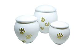 Urna metalica disponibila in 3 variante de dimesniuni. Este de culoare alba-mat, cu urme de labute de culoare aurie. Urna mare si mijlocie au 3 labute, iar cea mica are o singura labuta. Urna are capac la